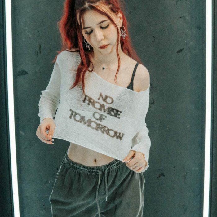 See-through crop top z długim rękawem