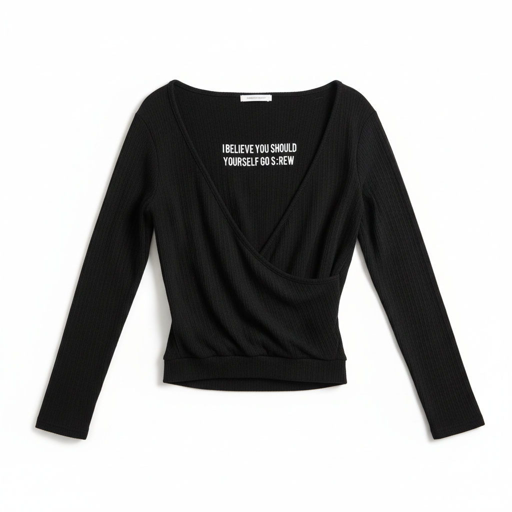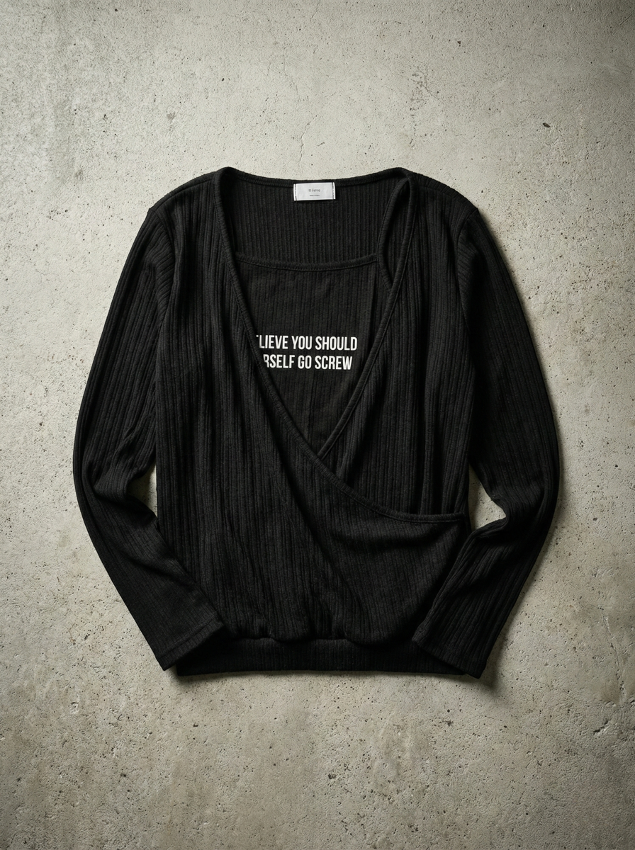 Luźny kopertowy longsleeve z wbudowanym, wiązanym na szyi topem halter z nadrukiem.