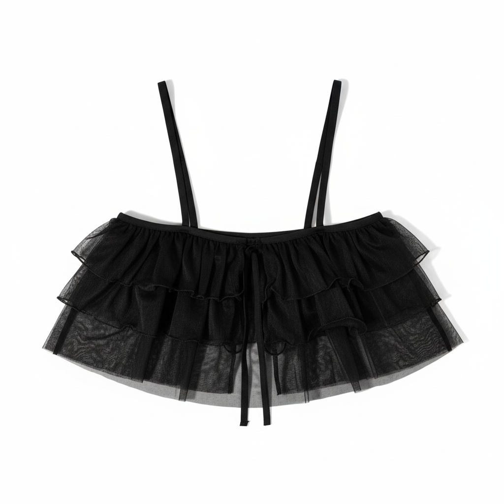 Prześwitujący, wiązany lace top do stylizacji.