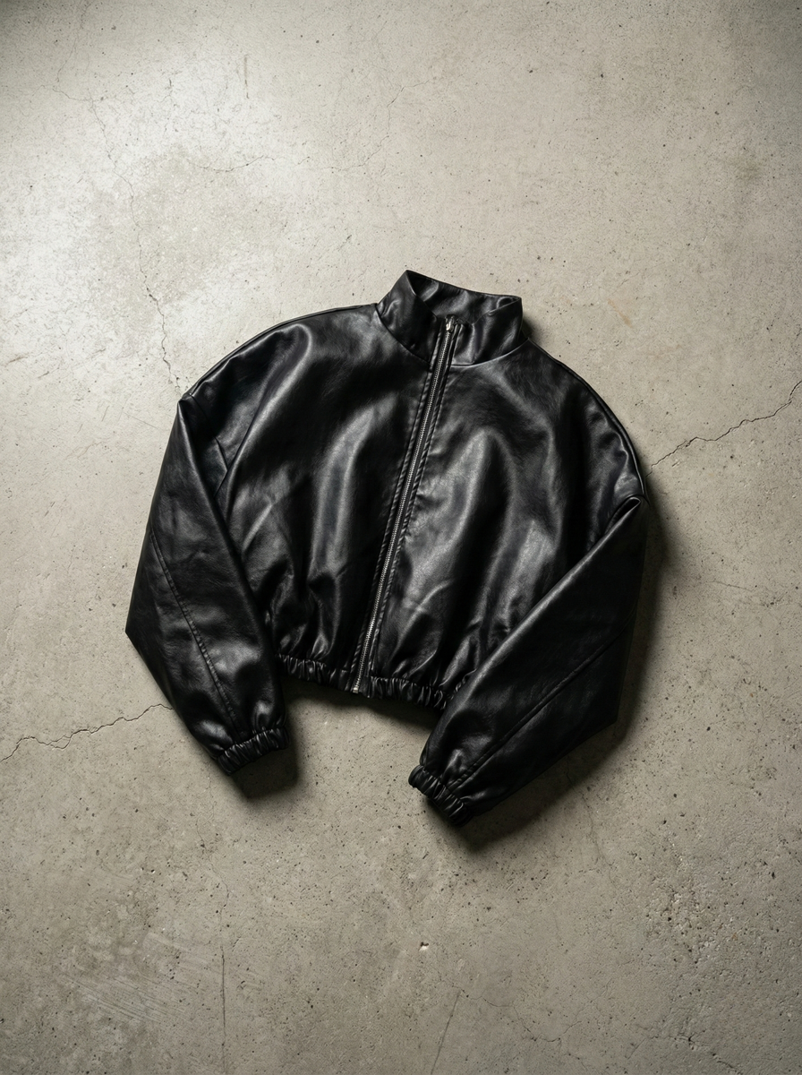 Skórzana kurtka cropped bez kołnierzyka