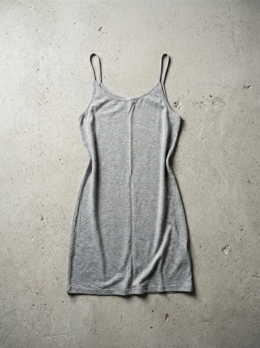 Cienka sukienka midi z miękkiego, lejącego się materiału na cienkich ramiączkach.